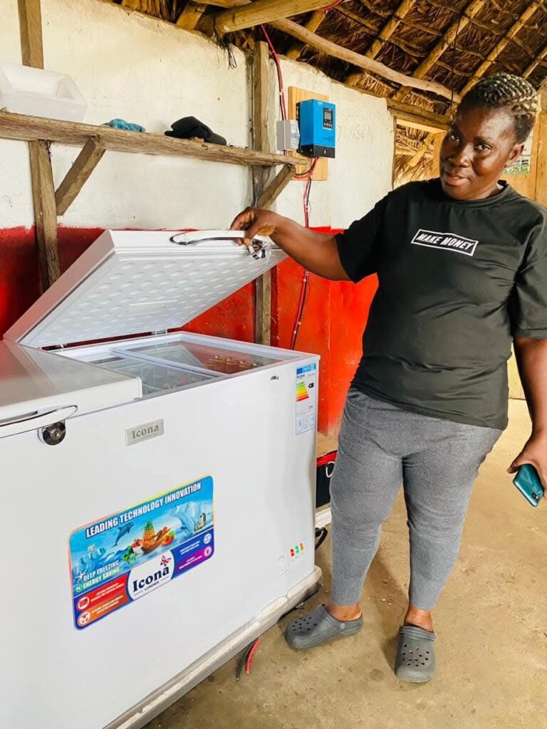 Cecelia P. Johnson live in Tailor Kru town, a very remote village located in Grand Cape Mount County. The town is not connected to the national grid, so the residents have to rely on alternative sources of energy like kerosene lamps and generators. As a mother of seven children who run a small business selling fish and other perishable goods. She had always struggled to keep her products fresh because she did not have access to a reliable source of refrigeration.